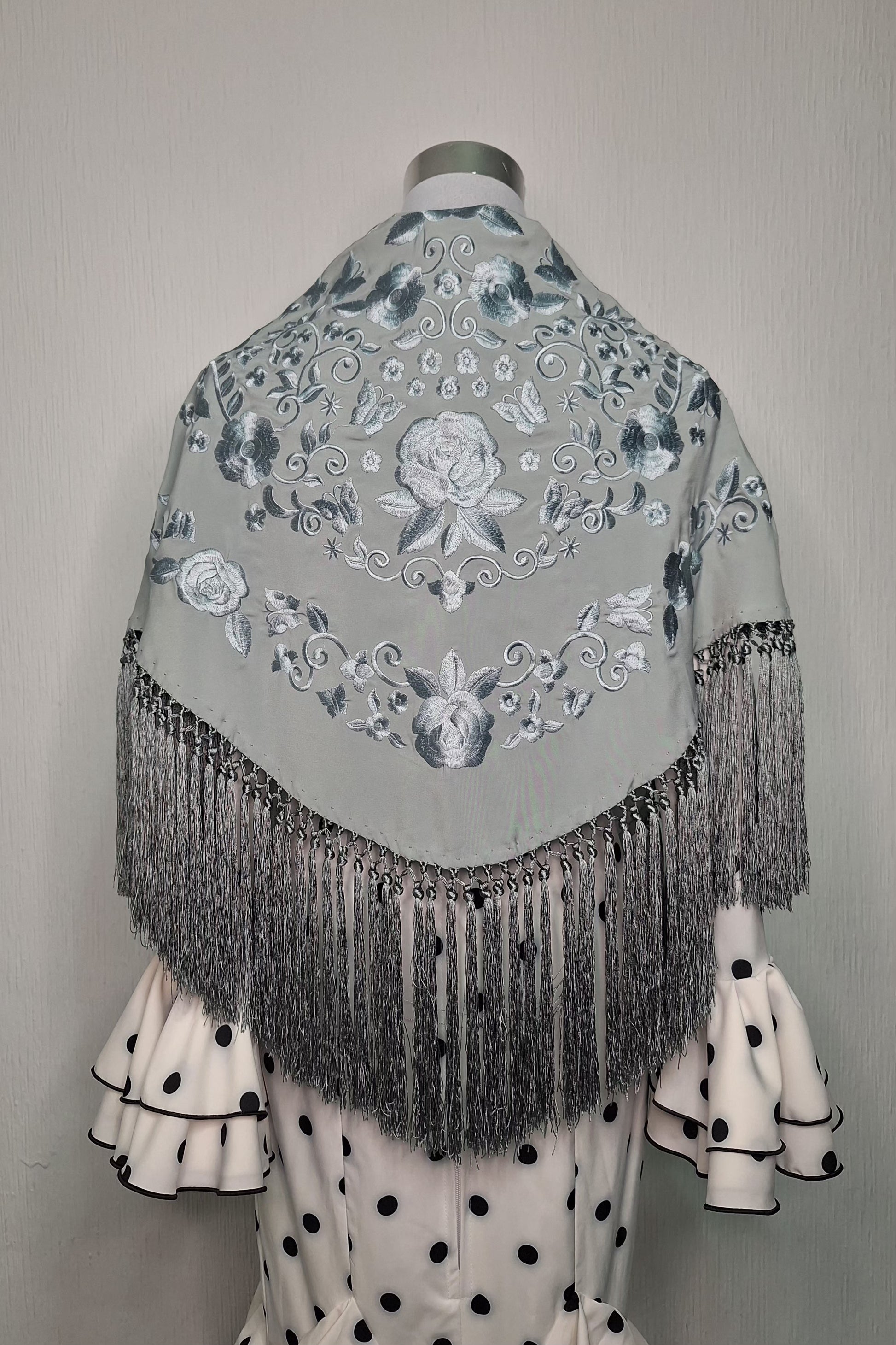 Mantoncillo Rocío verde jabonoso bordado al tono. Crespón 100%